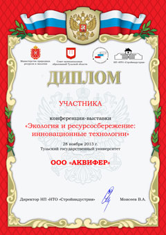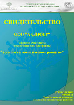 С июня 2013 года компания АКВИФЕР является членом Технологической платформы «Технологии экологического развития»